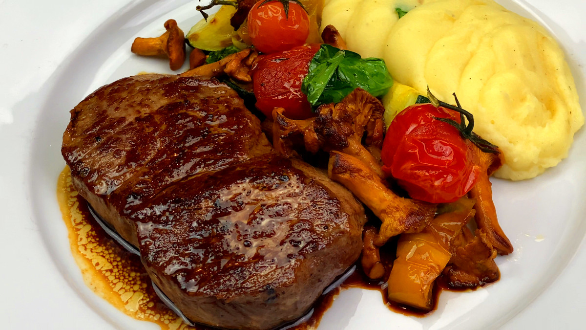 M, O | mit Eierschwammerl und Ofenerdäpfel